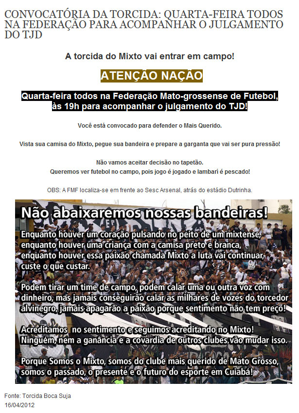 LEIA ABAIXO A CONVOCAÇÃO DA TORCIDA