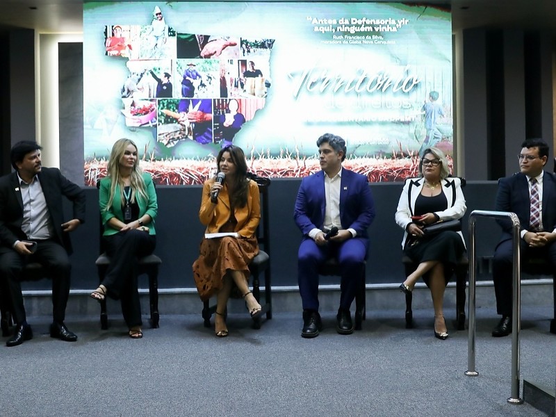 “Esse momento foi tão esperado por nós, onde a gente apresentou a todos o nosso documentário sobre o Território de Direitos. O projeto, que hoje já é um programa, ele foi muito sonhado. Sonhado porque é uma das nossas premissas básicas, que a Defensoria Pública esteja onde a população precisa. O Território de Direitos é um braço importante que faz com que a Defensoria Pública esteja dentro dos assentamentos, dentro daquelas localidades aonde existe conflitos. Nosso projeto faz com que a Defensoria Pública esteja lá, conversando com uma a uma das pessoas, identificando qual é a realidade delas, o que elas construíram ao longo de toda a vida. O documentário traz alguns depoimentos em que eles falam que é a vida deles que está em jogo. Disputar aquela área, discutir aquela área, ter o direito a permanecer naquela área, é a vida dessas pessoas”, falou a defensora pública-geral, Luziane Castro.