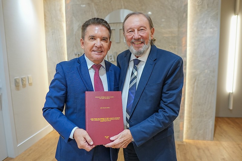 O conselheiro do Tribunal de Contas de Mato Grosso (TCE-MT), José Carlos Novelli, apresentou ao presidente da instituição, Sérgio Ricardo, e ao governador Mauro Mendes sua tese qualificada de doutorado intitulada “Mesa Técnica nos Tribunais de Contas: uma nova alternativa para a resolução de conflitos pelo controle externo na Administração Pública”.