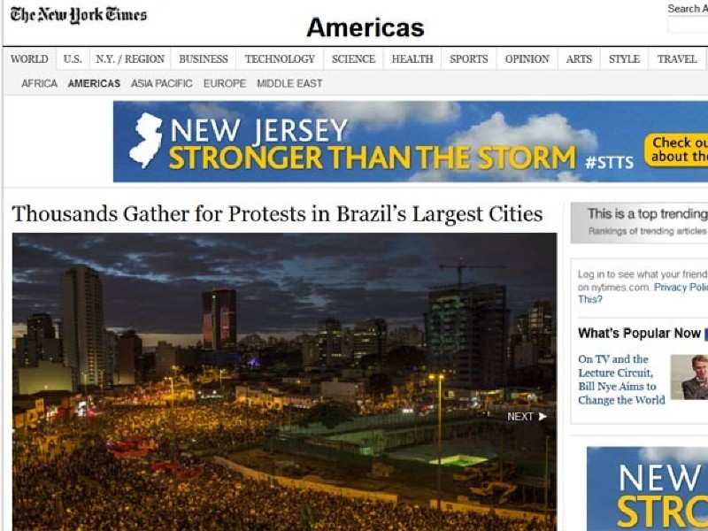 As manifestações de cerca de 250 mil pessoas na segunda-feira (17) nas principais cidades brasileiras foram manchetes nesta terça (18) na imprensa internacional.