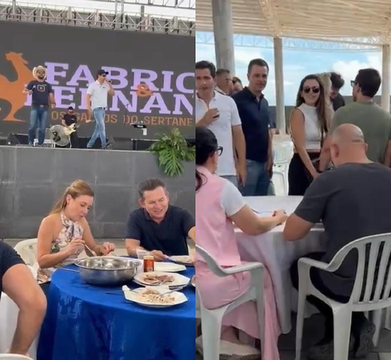 O prefeito de Cuiabá, Abilio Brunini (PL), não sentou à mesa com o governador Mauro Mendes (UB) durante almoço no Parque Novo Mato Grosso. Enquanto a prefeita de Várzea Grande, Flávia Moretti (PL), estava ao lado de Mauro Mendes, Abilio ficou com a primeira-dama da Capital, Samantha Iris, em uma mesa distinta. O casal foi o único do dispositivo principal a sentar separado.