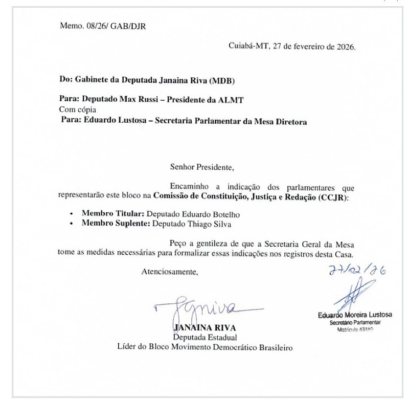 Após a mudança de bloco, Riva indicou Botelho para a CCJR, movimento que deve resultar na republicação da composição das comissões técnicas da Casa.