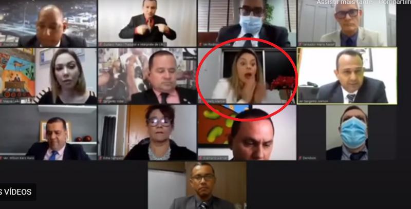 A vereadora de Cuiabá Michelly Alencar (DEM) foi flagrada dançando durante transmissão da sessão na manhã desta quinta-feira (15). A parlamentar fez uma "sarrada" no ar, um passo conhecido nas redes sociais. Assim que percebeu que a sessão estava sendo trasmitida, a vereadora ficou aparentemente sem graça e saiu correndo da sala.