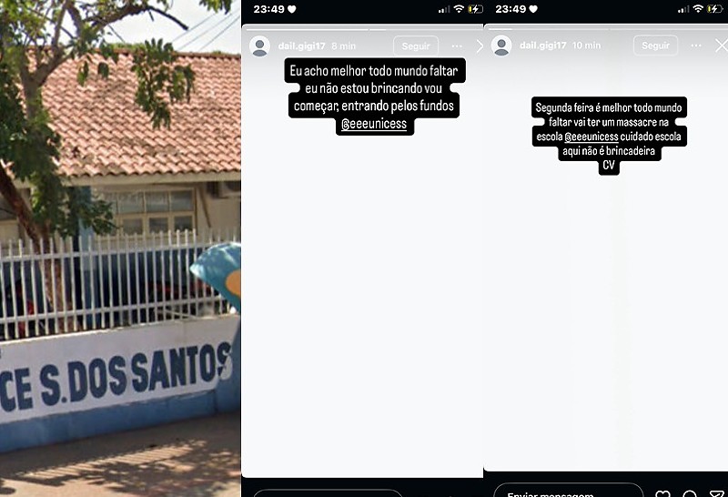 Já em outra mensagem postagem, a jovem cita massacre. ‘’Segunda-Feira É Melhor Todo Mundo Faltar, Vai Ter Um Massacre Na Escola. Aqui não é brincadeira’’, escrevendo a sigla do Comando Vermelho logo em seguida.