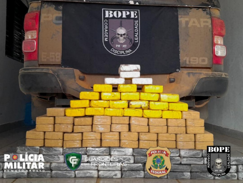Policiais do Batalhão de Operações Especiais (Bope) apreenderam 113 quilos de cocaína em uma caminhonete Ranger nesta quinta-feira (10), durante uma ação da “Operação Hórus”, em Salto do Céu (371 km de Cuiabá). Até o momento, ninguém foi preso.