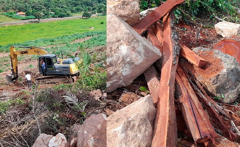 A ação foi realizada por equipes da Delegacia Especializada do Meio Ambiente (Dema), que flagraram uma pá escavadeira em pleno funcionamento, derrubando vegetação nativa e preparando o solo para formação de pastagem.