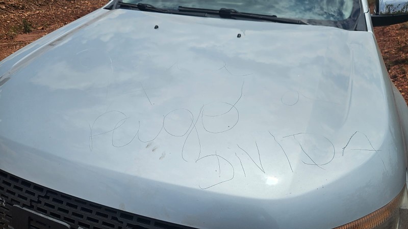 Sob o capô da caminhonete prata, uma Ford Ranger, próximo ao corpo da vítima, estava escrito “pago dívida (sic)”, possivelmente afirmando "dívida paga".