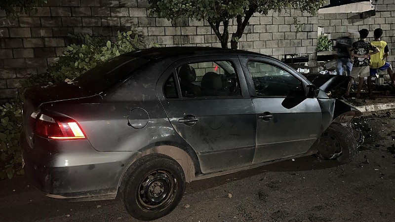 Um veículo de passeio em alta velocidade, perdeu o controle e colidiu violentamente contra o muro de proteção do Residencial Valência no Bairro Parque das Nações em Cuiabá. O acidente aconteceu na madrugada deste domingo (05) e o motorista estava bêbado. A frente do carro ficou totalmente destruída e partes do muro atingiram carros que estavam estacionados no condomínio. Veja vídeos