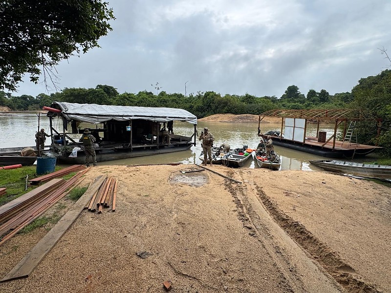 Polícia Civil e órgãos ambientais deflagram operação integrada para conter danos ambientais causados por garimpo ilegal nos rios Peixoto e Peixotinho.