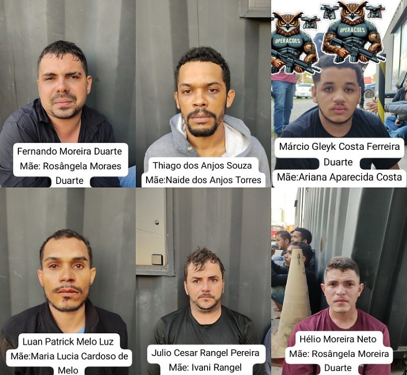 Foram detidos Márcio Gleik Costa Ferreira (21 anos), Thiago dos Anjos Santos (31), Luan Patrick Melo Luz (29), Élio Moreira Neto (27), Fernando Moreira Duarte (33) e Júlio César Rangel Pereira (31).