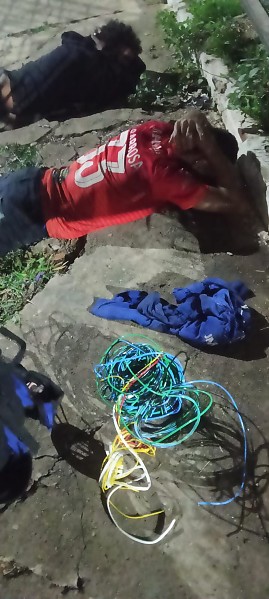 Com os suspeitos, a polícia encontrou ferramentas específicas para o crime, incluindo ferramentas de corte, uma serra e um alicate utilizados para extrair o material, e uma mochila com fios de cobre.