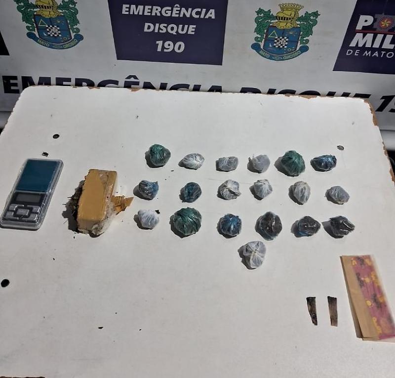 Policiais militares de Araputanga (353 km de Cuiabá) conduziram dois homens e detiveram dois adolescentes por violação de domicílio e tráfico de drogas nesta terça-feira (25). Com eles, foram encontradas 19 porções análogas de maconha e parte de um tablete do mesmo entorpecente.