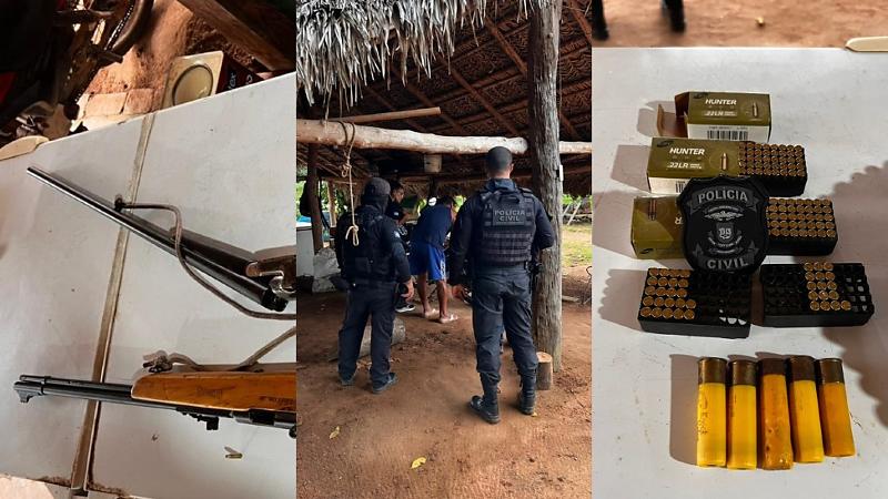 Diante do apurado, o delegado Fábio Nahas representou por quatro mandados de busca e apreensão, que foram deferidos pela Justiça e cumpridos nesta sexta-feira (13). Durante o cumprimento dos mandados, foram apreendidas duas armas, uma espingarda .22 e uma espingarda de dois canos .20, e dezenas de munições de diversos calibres.