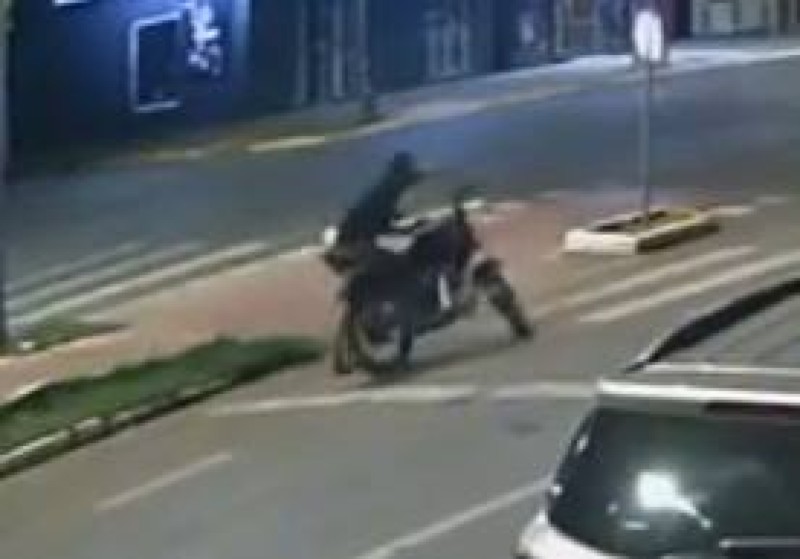 De acordo com as imagens, por volta das 3h45, um homem vestido com roupas escuras e boné caminhava pela calçada da Avenida Porto Alegre quando se aproximou de uma motocicleta preta estacionada do outro lado da via. Ele levou o veículo para o canteiro central e, após observar que ninguém percebia sua ação, subiu na moto e fugiu do local.