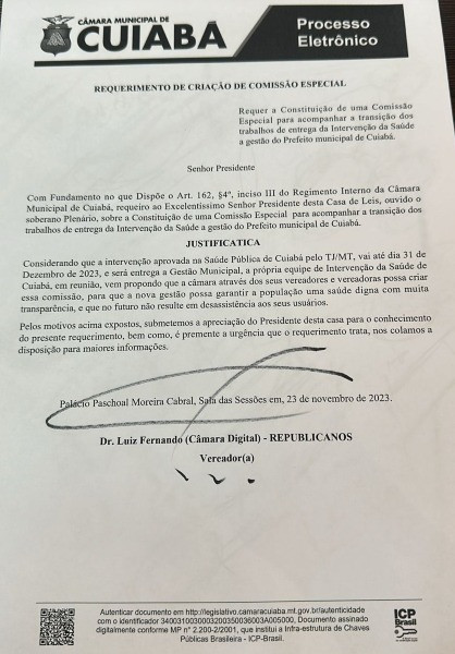 O vereador do Republicanos lembrou que a intervenção termina em 31 de dezembro, como determinou o Tribunal de Justiça de Mato Grosso, e por isso a importância desse trabalho como forma de garantir estabilidade na saúde de Cuiabá.