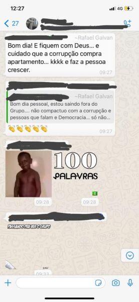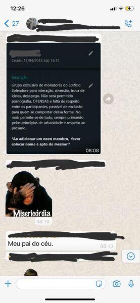 A discussão se estendeu e os condôminos tentaram lembrar a família da regras do grupo e que ali não era o local para “lavação de roupa suja”.