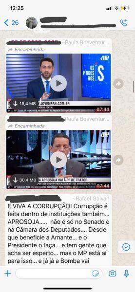 "E VIVA A CORRUPÇÃO! Corrupção é feita dentro de instituições também... APROSOJA... não é só no Senado e na Câmara dos Deputados.... Desde que beneficie a Amante... E o presidente o faço... e tem gente que acha ser esperto..., mas o MP está aí para isso... e já, já a Bomba vai estourar.... Aqui se faz aqui se paga”, escreveu o filho do presidente da Associação.
