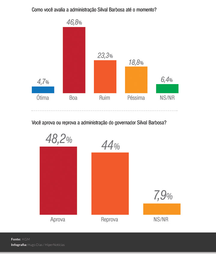 Na modalidade de avaliação na escala que vai de ótimo a péssimo, a pesquisa também registrou um equilíbrio entre as avaliações positiva e negativa. A administração Silval obteve 51,5% de positiva, sendo 4,7% de ótimo e 46,8% de bom. Já a avaliação negativa atingiu 42,1%, com 23,3% de ruim e 18,8% de péssima.