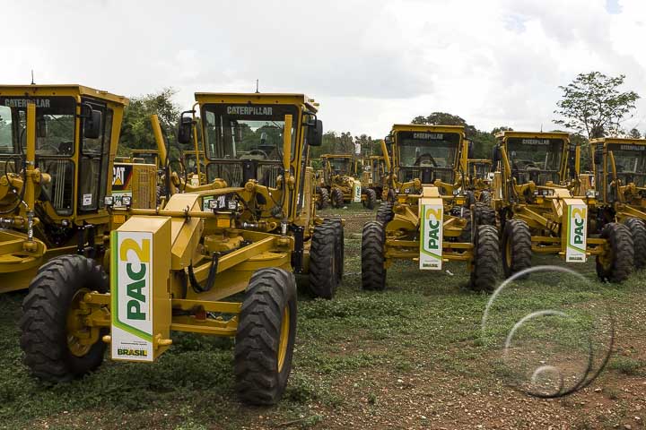 As 44 retroescavadeiras e 34 motoniveladoras que integram a segunda etapa do Programa de Aceleração do Crescimento (PAC2) já estão no pátio do Ministério da Agricultura, Pecuária e Abastecimento (MAPA), na Avenida da Feb em Várzea Grande.