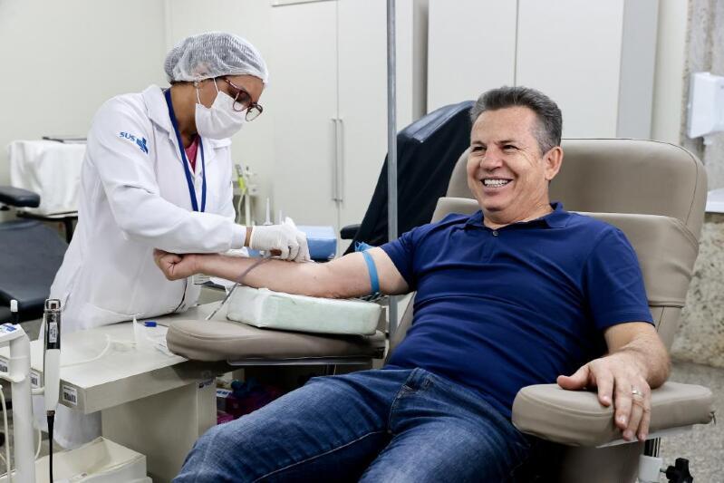 O governador Mauro Mendes (UB) participou da campanha do Hemocentro-MT e fez a doação de sangue na manhã deste sábado (29), na sede da unidade, em Cuiabá.
