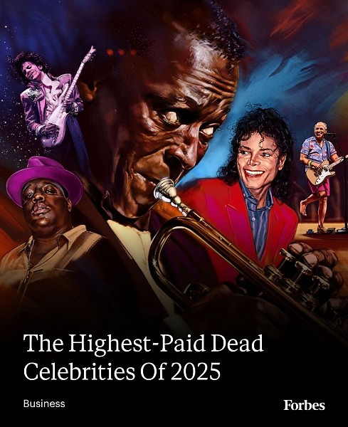 Michael Jackson, morto em 2009, encabeça a lista. De acordo com a revista, o espólio do Rei do Pop faturou US$ 105 milhões, apurados com royalties de músicas e produções baseadas na sua vida. Ainda de acordo com a Forbes, os herdeiros de Michael Jackson já faturaram US$ 3,5 bilhões desde a morte do cantor.