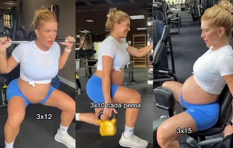 Em vídeo publicado em seu perfil, a dançarina apareceu realizando exercícios como agachamento, cadeira adutora e abdutora, além de caminhada na esteira, sempre com o barrigão à mostra. A trilha sonora escolhida foi a música "Academia", hit do marido.