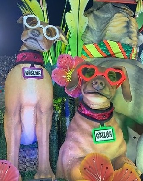 Durante a passagem da verde e branco, o público mais atento notou que as placas de identificação das esculturas de cães, todas estavam com o nome de Orelha. Assista ao final.
