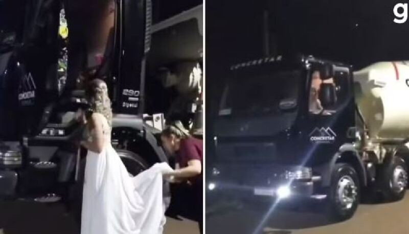 O episódio curioso ocorreu no sábado (21). A caminhoneira Marina Harth, de 29 anos, realizou o sonho de chegar ao próprio casamento dirigindo o caminhão betoneira, que carrega concreto, com o qual trabalha diariamente.