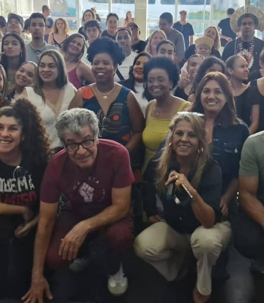 O ator ainda brincou com o passado político da colega de profissão. "Ela pode voltar num crossover, como chamam. Sai da frente de um quartel vestida com a bandeira do Brasil", disse, entre risadas, ao lado da esposa.